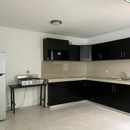 Een ingerichte keuken maakt deel uit van de voorzieningen die beschikbaar zijn in Casa Moderna Malecon Playa Villa. - ❓